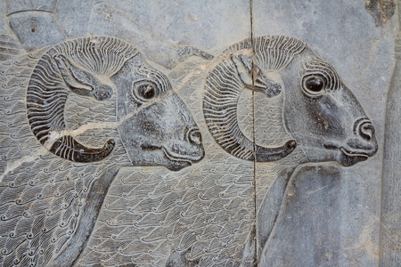 Persepolis, Iran - May 2019: Horse head in Ruins of Persepolis, the capital of the Achaemenid Empire later destroyed by Alexander the great. Historical city of Persepolis in Shiraz, Iran