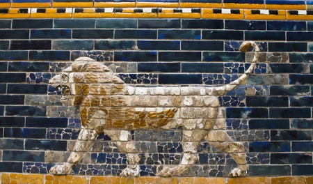 Lion on Babylonian mosaic, fragment of the Ishtar Gate in the Archeology Museum (photography allowed), Istanbul, Turkey