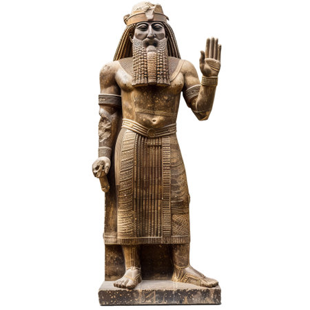 Ancient assyrian statue of a king or god raising his hand in a gesture of blessing