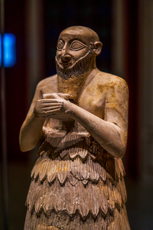 London, United Kingdom - May 13, 2019: Sumerian exhibit in British museum on May 13, 2019 in London, United Kingdom.
