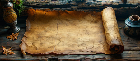 parchment scroll on wooden background.