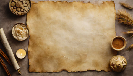 Empty old scroll showcasing weathered edges, perfect for vintage projects or historical themes. A versatile background for creative designs or presentations.