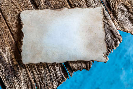 Mock up vintage retro old paper with an empty space for text, layout on the background of old grunge brown wooden boards, Empty blank parchment. Old sheet. Burnt manuscript on wood mockup.