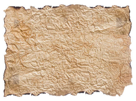texture of crumpled brown paper with burnt edges isolated on white background