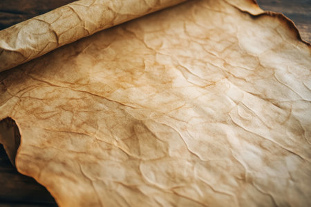A close-up shot of an aged, unfurled scroll, perfect for history, antique, or vintage themed projects.