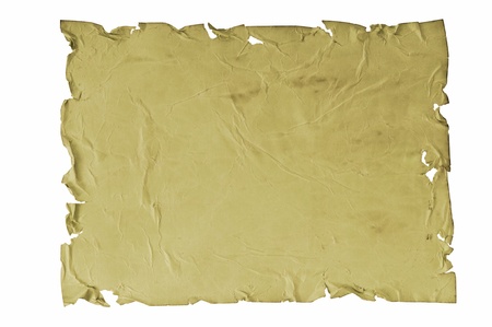 Old, torn, yellowed sheet of paper on white background