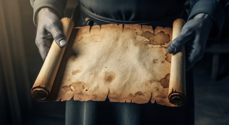 An evocative image of hands presenting a worn, blank scroll, symbolizing new beginnings, pivotal agreements, or strategic blueprints.