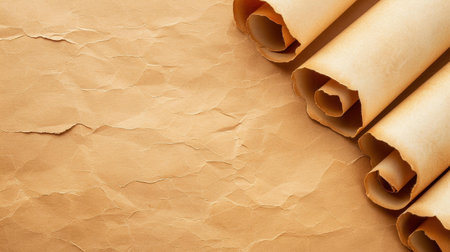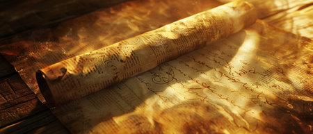 Explore the beauty of ancient scrolls featuring intricate writings. The rustic texture and warm tones evoke a sense of history and knowledge.