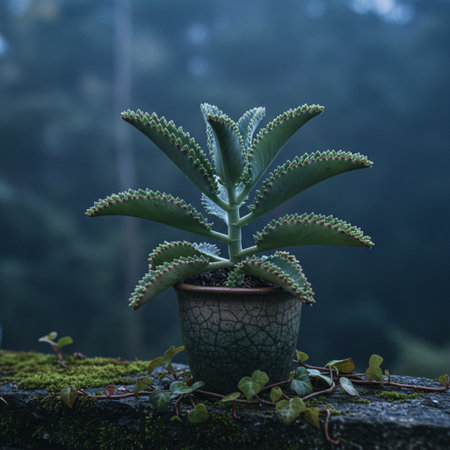 Succulent plant close up, the leaves of Millot Kalanchoe are thick, serrated and have hair on the leaves