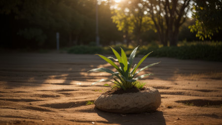 Near Up of a Energetic Plant Showered in Morning Light. Getting a handle on the Essentialness of Show day Beginnings. Creative resource, AI Generated