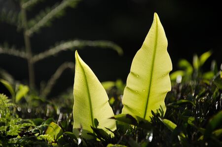 Low key of the peak green plant leaves, Selective focus.