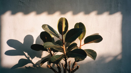A striking display of green foliage against a textured wall, showcasing the beautiful interplay of light and shadows for a serene and inviting atmosphere.