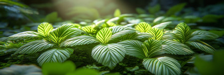 Full Frame Background of Fresh Green Plants with Unique Leaf Pattern
