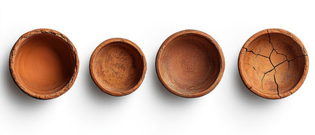 Discover a stunning collection of cracked earthen pots, perfect for rustic home decor. Studio shot with ample copy space for promotions.
