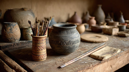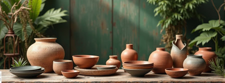 Artistic pottery pieces in earthy tones. AI generated illustration