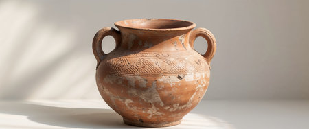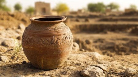AI Generated. Ancient Terracotta Vase with Carved Design