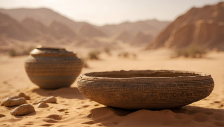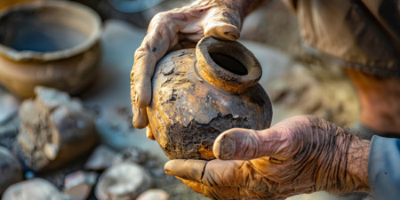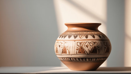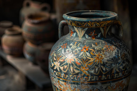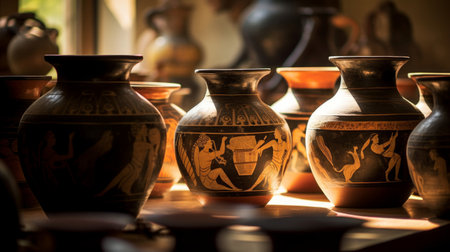 AI Generated. Ancient pottery with intricate designs highlights cultural craftsmanship and history