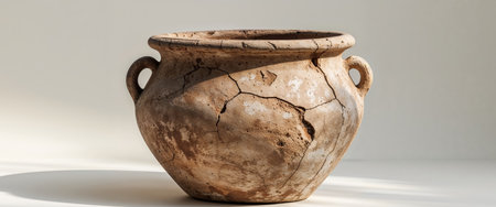 AI Generated. Ancient Clay Pot with Cracks and Weathered Surface Displays History