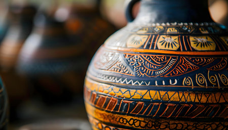 Explore the intricate details of a traditional pottery piece showcasing vibrant colors and unique patterns that reflect rich cultural heritage and artistry.