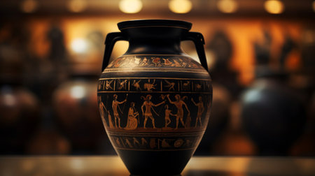 Ancient greek vase with ornate gold and black design, showcasing the artistry of a bygone era
