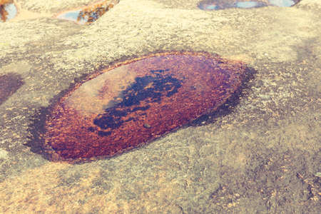 Surface sandy rock. Rocky shore of the Caspian Sea.