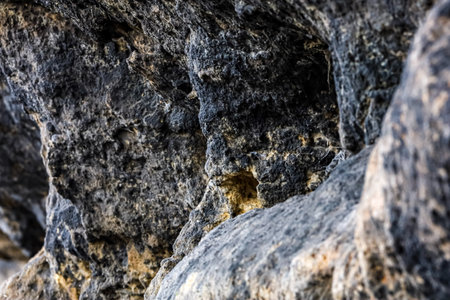 Detailed macro shot showcasing the rough surface and intricate patterns of ancient geological structures