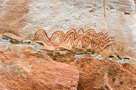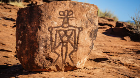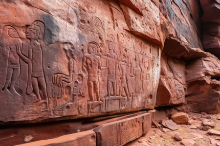close-up of ancient petroglyphs on red sandstone, created with generative ai