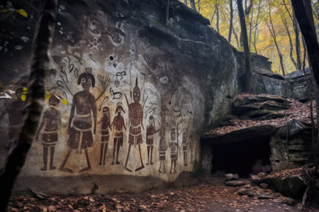ancient tribal cave paintings in the forest, created with generative ai