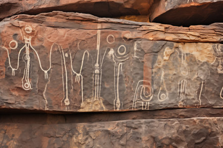 native petroglyphs on a canyon wall, created with generative ai