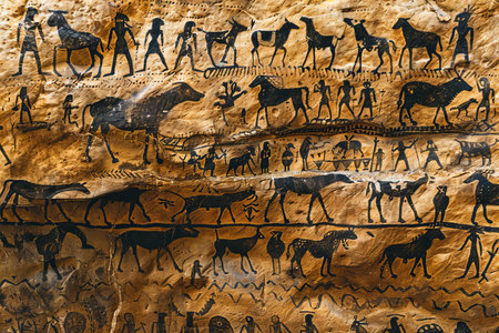 ancient rock art depicting human figures and animals