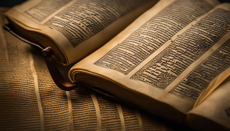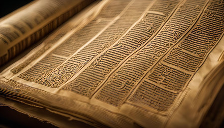 A close-up shot of an ancient book with intricate script, showing the beauty and history of written knowledge.