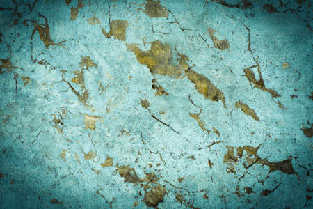 Old gray surface. Art rough stylized texture banner with space for text. Blue and yellow background texture decorative plaster. Grungy concrete wall with multi-colored lighting and blurred edges.