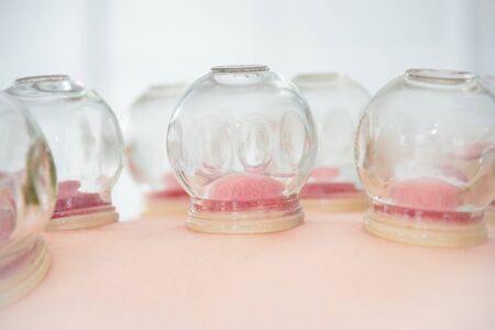 Close-up Of Cupping Treatment on patient back at alternative medical clinic.