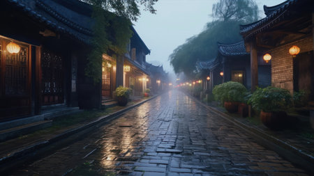 Deserted alley in a traditional Chinese town in the early morning