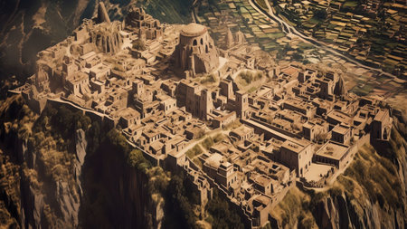 Generative AI : Panoramic aerial view of Uchisar Castle in Uchisar old town Cappadocia Nevsehir Turkey