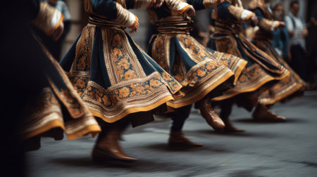 Immerse yourself in the vibrant atmosphere of a traditional cultural parade showcasing intricate costumes and unique footwear. This celebration highlights rich heritage and artistry through detailed patterns and vibrant colors.