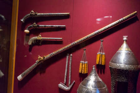 ISTANBUL, TURKEY - SEPTEMBER 21, 2019: Ancient Turkish weapons in the Museum. Sword