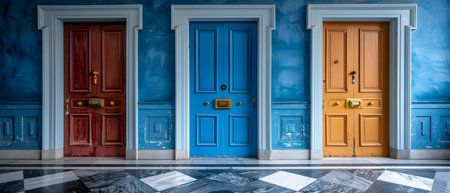 Navigating Choices: A Room with Three Closed Doors. Concept Mystery, Decision-Making, Adventure, Three Doors, Room