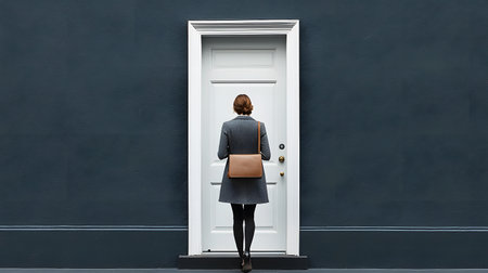 A stylish front door of a house cast in shadows on a teal wall, conveying a sense of welcome and security.
