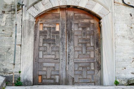 Close-up of an ancient gate. An ancient structure of gray stone. Restoration objects. Historical sights and tourist locations.