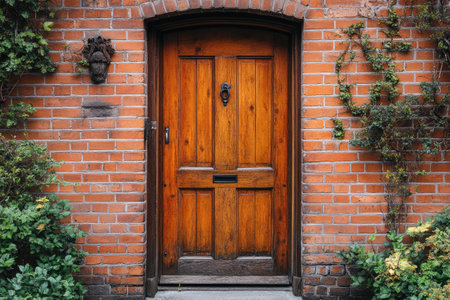 A charming vintage doorway framed by a rustic brick wall, showcasing unique architectural features. The warm tones create an inviting atmosphere.