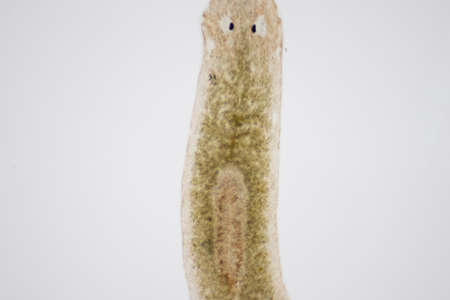 Planarian parasite (flatworm) under microscope view.