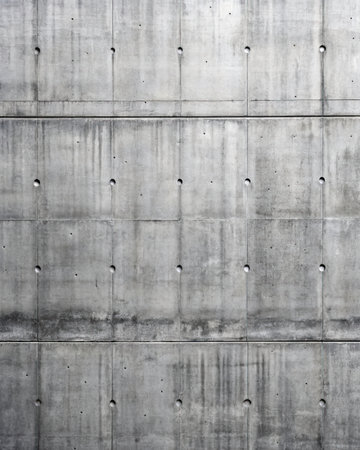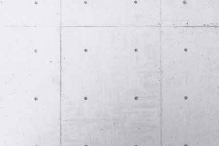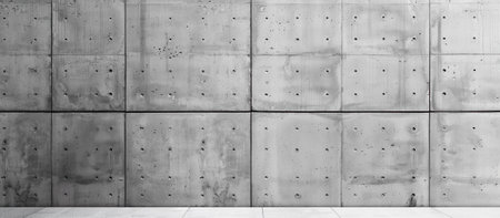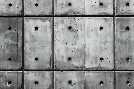 A clean and modern concrete wall featuring a textured surface with square panels and evenly spaced holes, perfect for industrial themes.