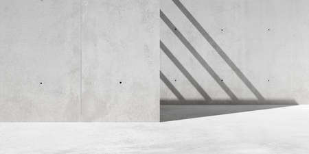 Abstract empty, modern concrete walls exterior room with sunlight shadow - industrial exterior background template, 3D illustration
