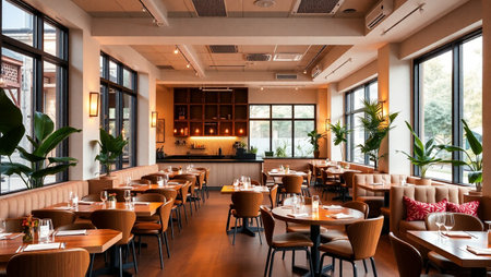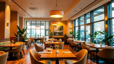 Elegant restaurant interior with set tables and ambient lighting