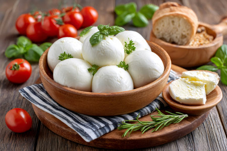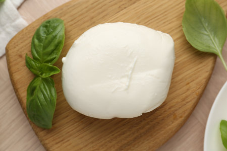 Italian soft mozzarella cheese on a wooden table
