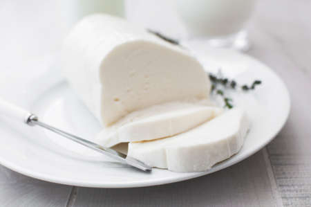 Italian soft cheese mozzarella, white cheese made from cow or buffalo milk close up