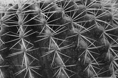 Prickly surface of cactus texture on black background. Macro closeup.
