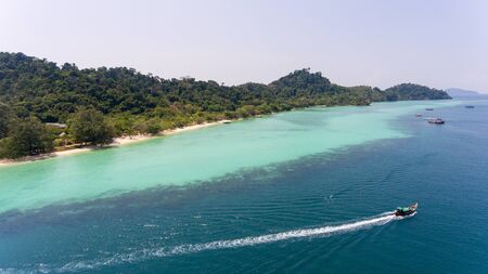 Aerial view to a tropical beach. Koh Ngai, Trang, Thailand