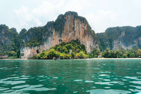 Travel, sea and rocky mountains in Thailand,sea and boat
